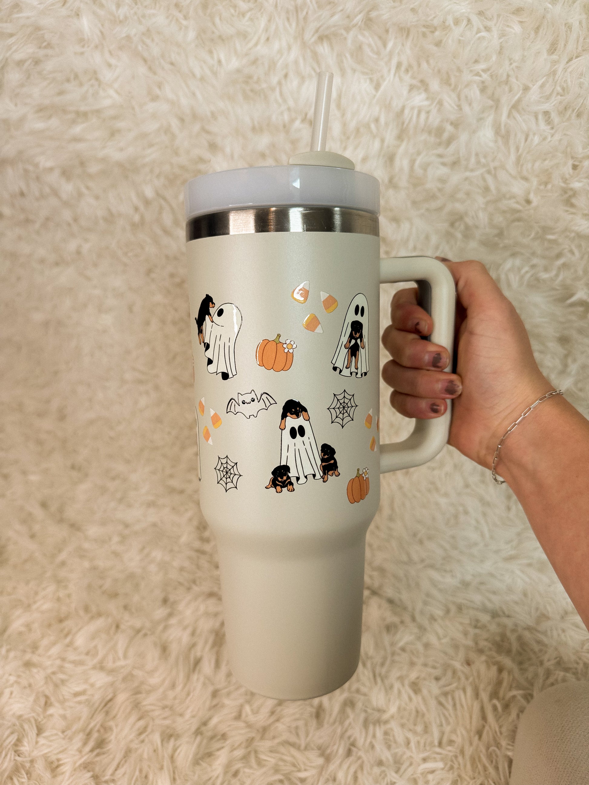 Stay hydrated in style with this large-capacity tumbler, built for dog lovers on the go. Its double-wall vacuum insulation keeps drinks hot or cold for hours, while the sturdy comfort-grip handle makes it easy to carry anywhere.