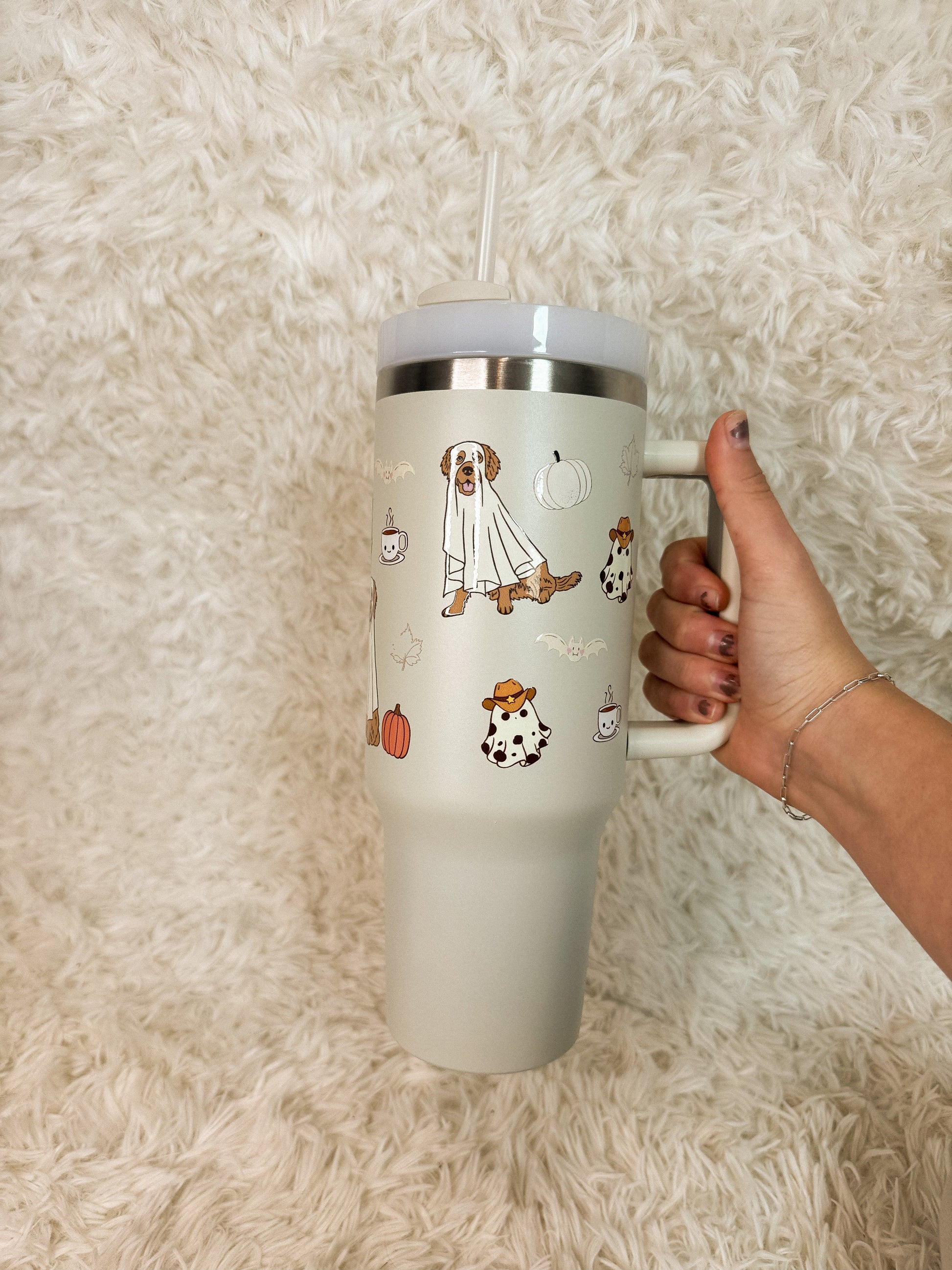 Stay hydrated in style with this large-capacity tumbler, built for dog lovers on the go. Its double-wall vacuum insulation keeps drinks hot or cold for hours, while the sturdy comfort-grip handle makes it easy to carry anywhere.